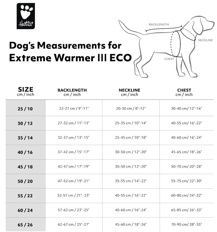 Hurttas populære Extreme Warmer ECO hunde-vinterjakke har nå fått en enda mer miljøvennlig oppdatering, samt økt ytelse og slitestyrke, slik at du og din firbeinte kan takle vinterens kaldeste dager! Extreme Warmer ECO hundejakken passer alle hunder, spesielt hunder som er aktive i hobby- og konkurranseidretter, eldre hunder og andre kuldefølsomme individer eller valper, og selvfølgelig også korthårede og hundevenner med mindre pels som trenger en ekstra dose av varme og omsorg.