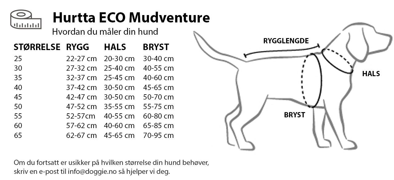 Mudventure Coat ECO hundejakke er perfekt fordi den bidrar til å holde noe av skitten borte fra hundens pels. Og siden den ikke er fôret, er den lett og behagelig for hunden å ha på seg. Regnjakken er også praktisk i sommerregn hvis hundens pels trenger beskyttelse mot vind og regn, men ikke ekstra varme.