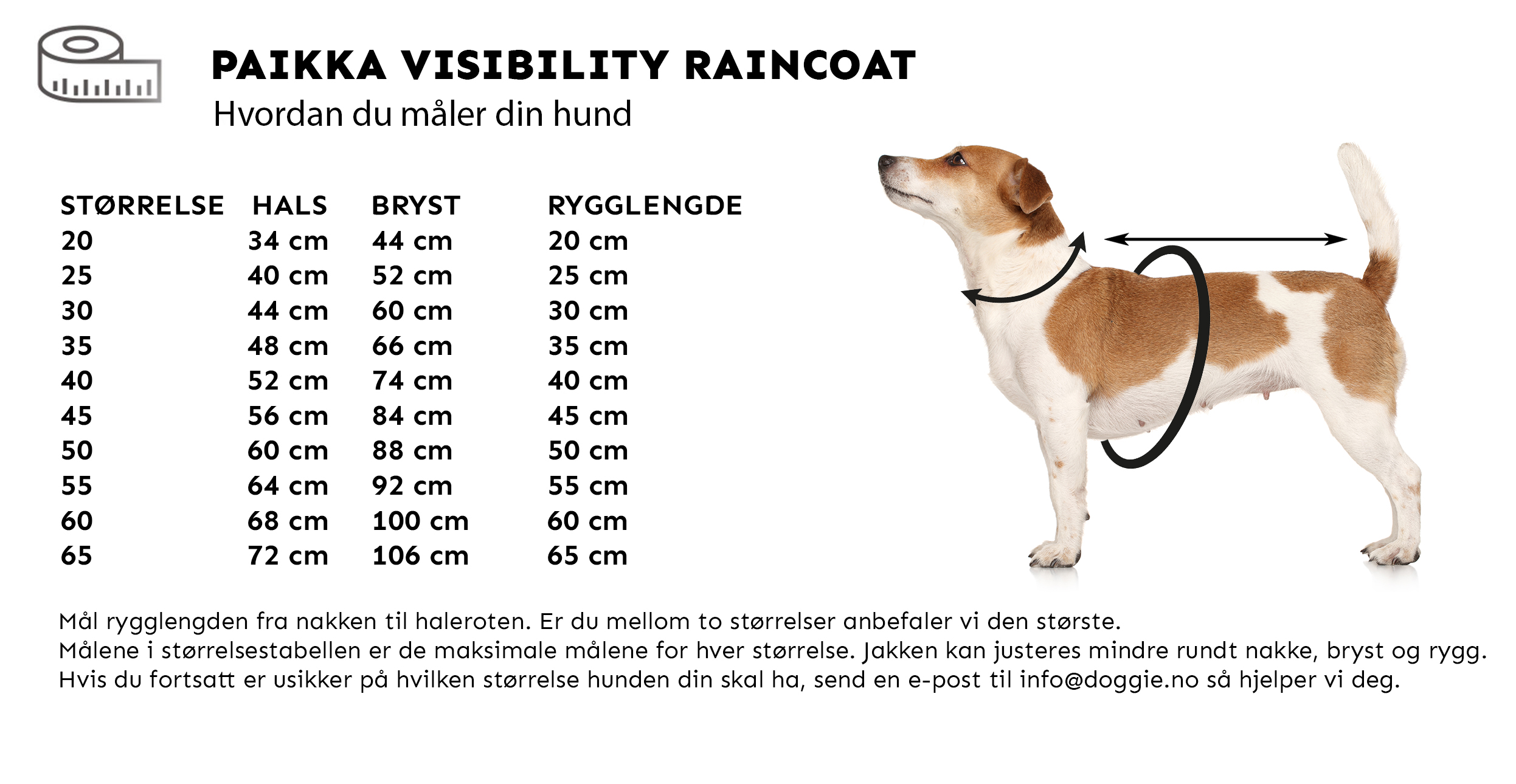 PAIKKA Visibility Raincoat holder hunden din tørr, varm og stilig ute på tur. Denne hundejakken og dens sømmer er 100% vanntett for å sikre at hunden din holder seg tørr og komfortabel, selv i røft vær.