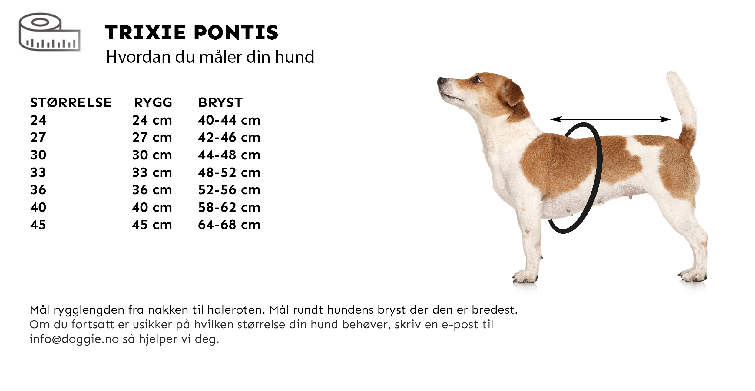 | STØRRELSE | RYGGLENGDE | BRYST |